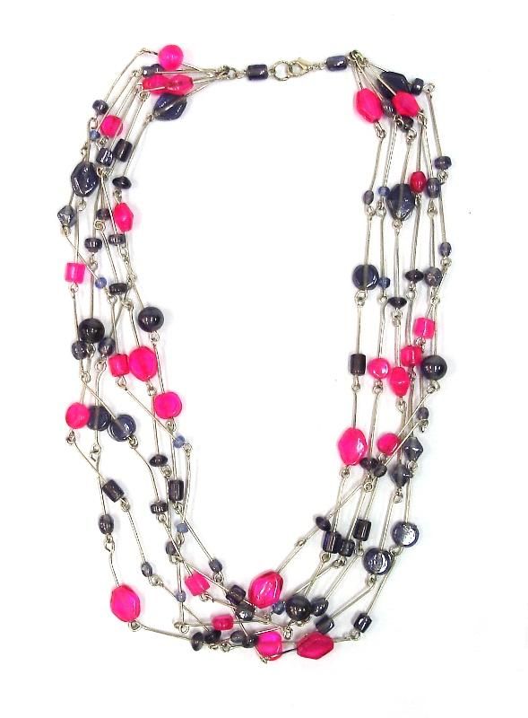 Πολύσειρο κολιέ με μωβ και φουξ πέτρες