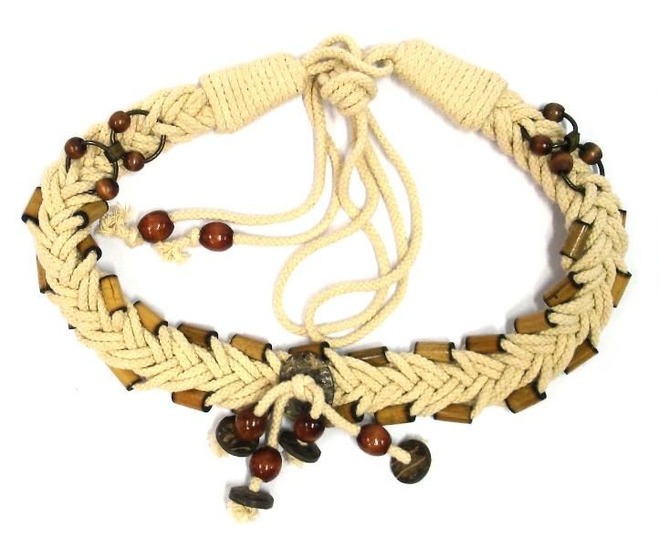 Μπεζ ζώνη από χοντρό σχοινί και bamboo χάντρες