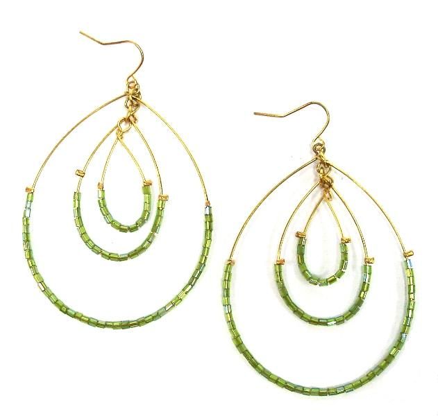 Χρυσά σκουλαρίκια από τριπλούς οβάλ κρίκους με χάντρες