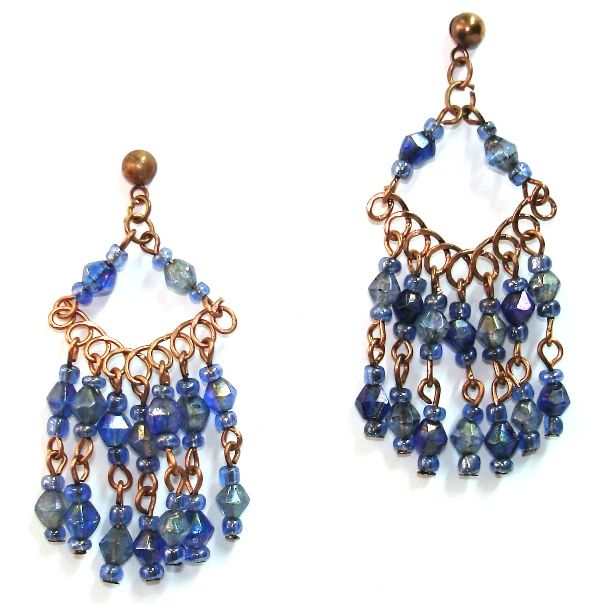 Χάλκινα ρετρό σκουλαρίκια με μπλε χάντρες