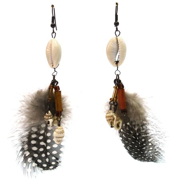 Σκουλαρίκια με κοχύλια και πούπουλα
