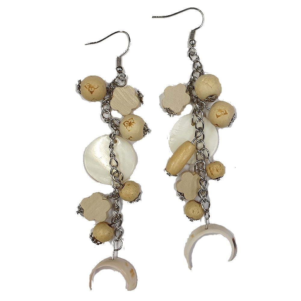 Μακριά σκουλαρίκια με ξύλινες χάντρες και κρεμαστά κοχύλια
