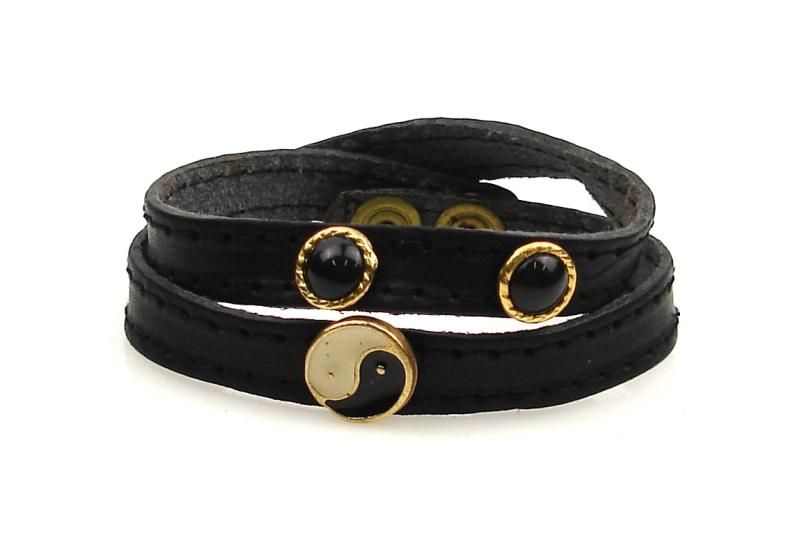 ΔΙΠΛΟ ΔΕΡΜΑΤΙΝΟ ΜΑΥΡΟ ΒΡΑΧΙΟΛΙ ΜΕ ΧΡΥΣΟ YIN YANG