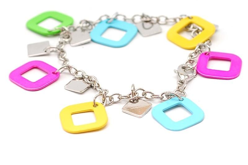 ΒΡΑΧΙΟΛΙ ΑΛΥΣΙΔΑ ΜΕ ΠΟΛΥΧΡΩΜΑ ΜΕΤΑΛΙΚΑ ΤΕΤΡΑΓΩΝΑ CHARMS