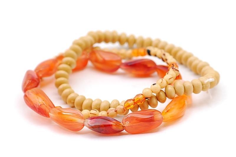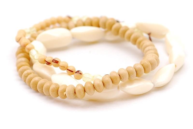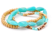 Τριπλό ελαστικό βραχιόλι με ξύλινες χάντρες και πέτρες