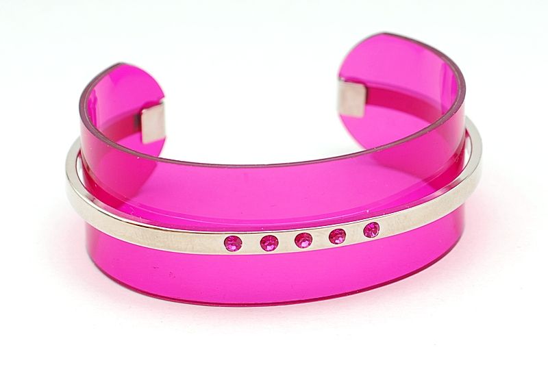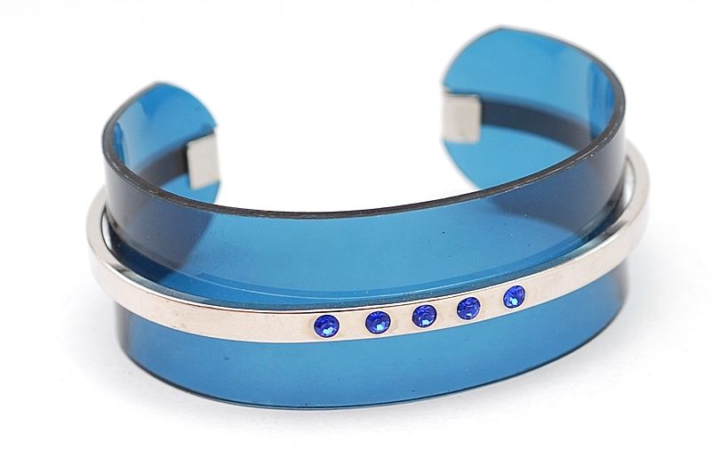 Plexiglass εύκαμπτο βραχιόλι με μεταλλική λεπτομέρεια και στρας