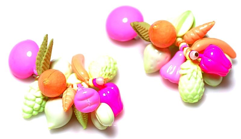 Πολύχρωμα κλιπ σκουλαρίκια με φρούτα