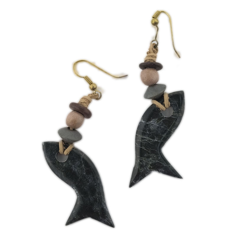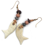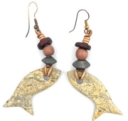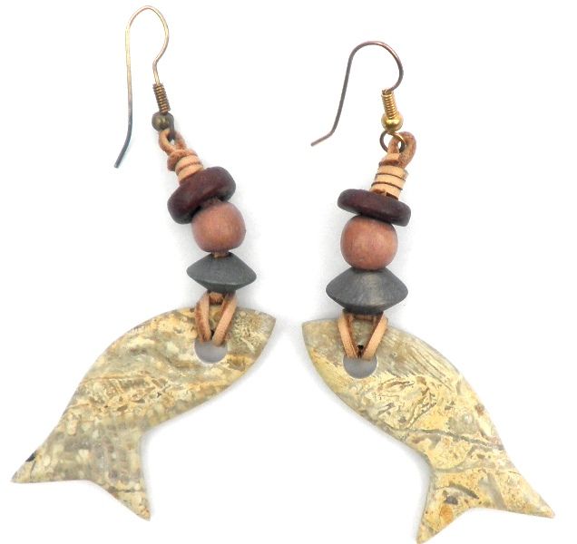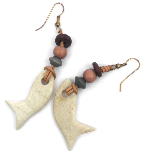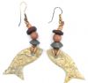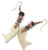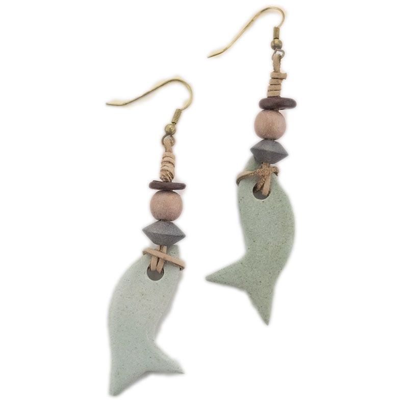 Κοκκάλινα σκουλαρίκια ψαράκια με δέρμα και ξύλινες χάντρες