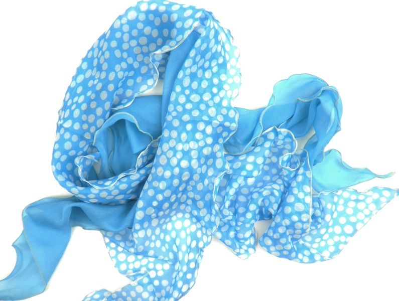 Τιρκουάζ με λευκό πουά Ιταλικό διπλό φουλάρι