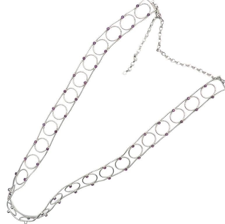 Ασημί ζώνη-κολιέ με κύκλους και μωβ στρας