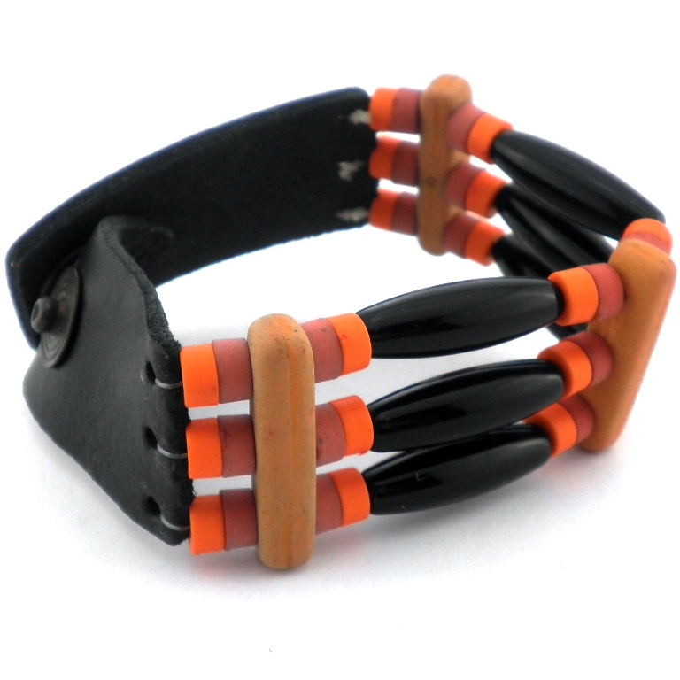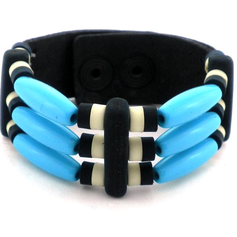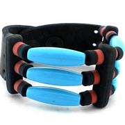 Μαύρο τρίσειρο έθνικ δερμάτινο βραχιόλι