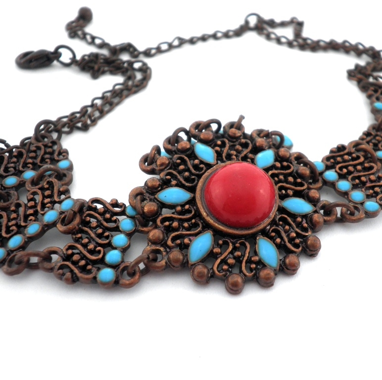 Χάλκινο σκαλιστό βραχιόλι με μεγάλη πέτρα