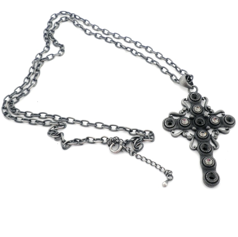 Σκαλιστός σταυρός με στρας και μακριά αλυσίδα