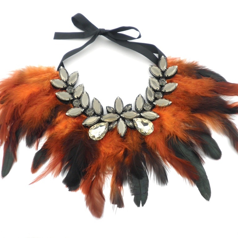 Κολιέ με πορτοκαλί φτερά Orange passion