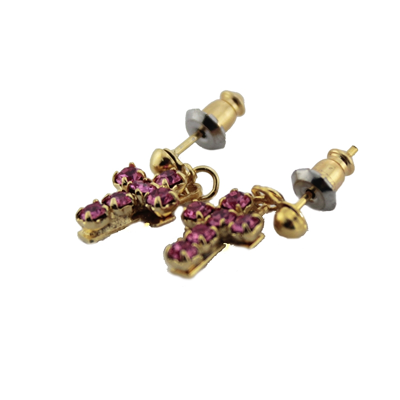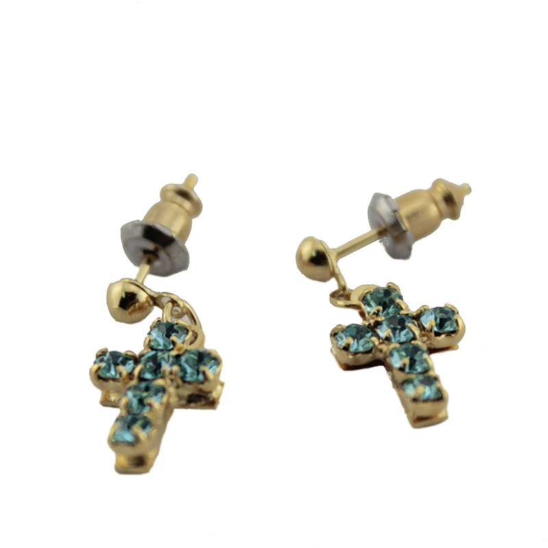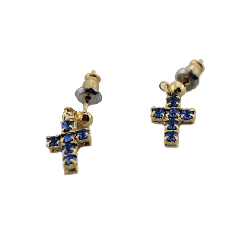 Κρεμαστά χρυσά σκουλαρίκια σταυρουδάκια με στρας