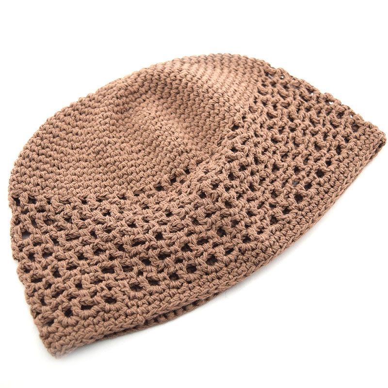 Διάτρητο μονόχρωμο crochet βαμβακερό σκουφάκι