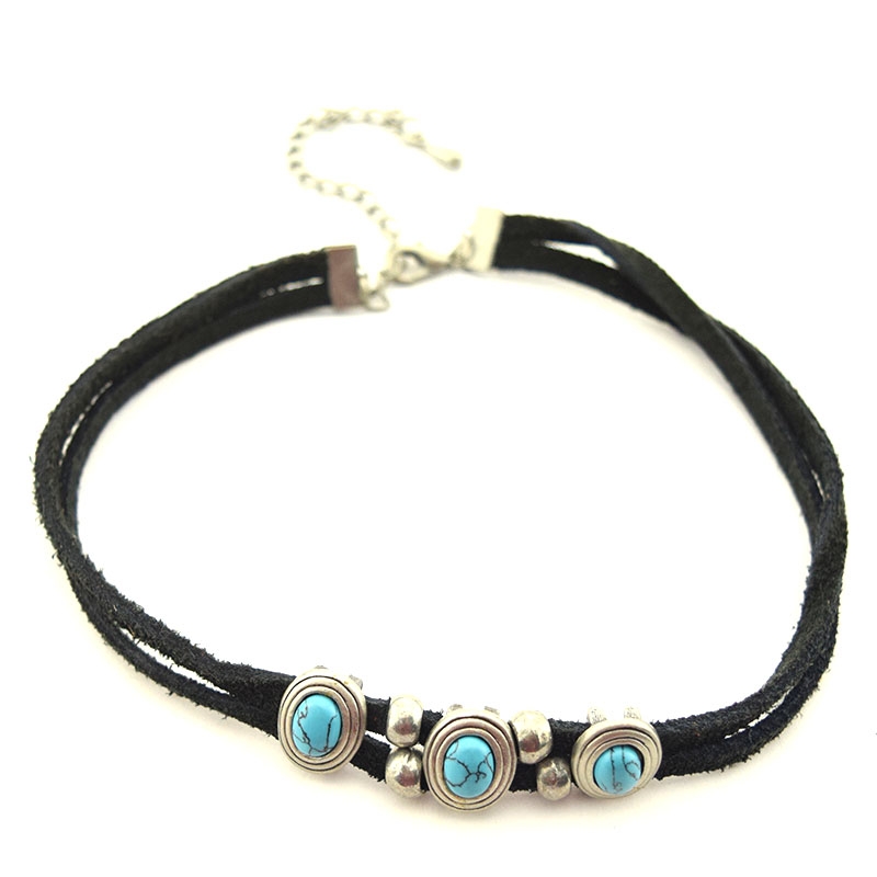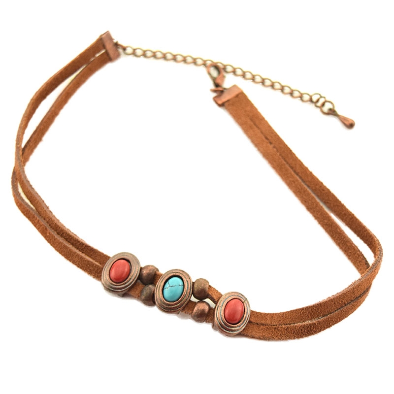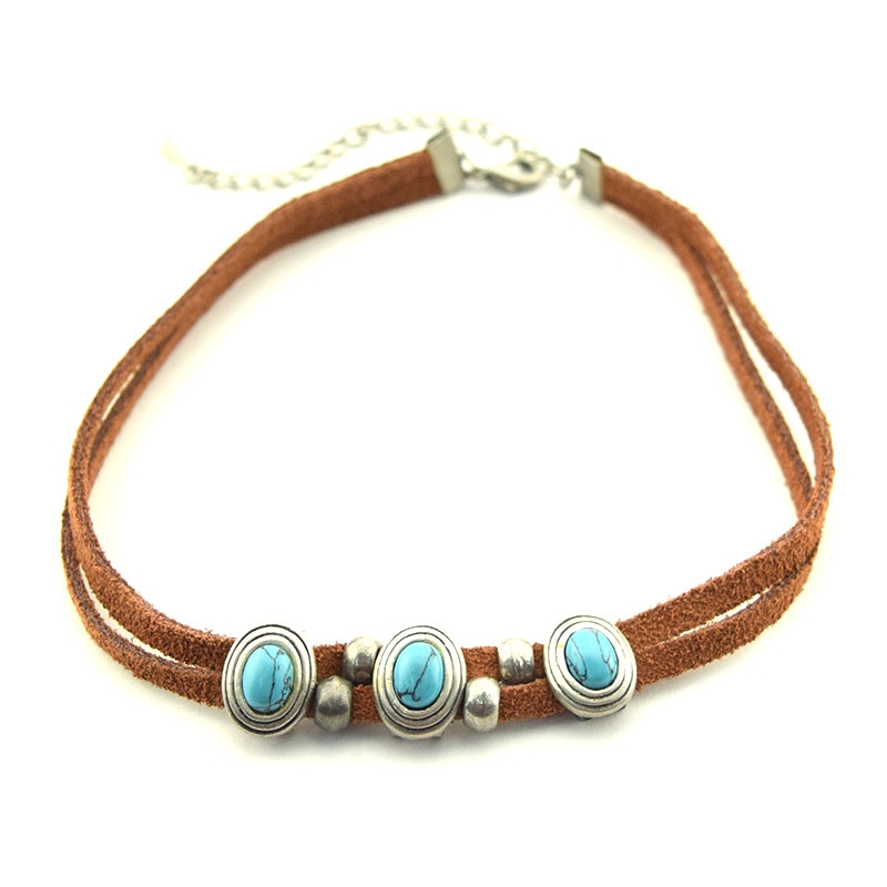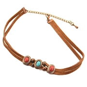 Δερμάτινο κολιέ τσόκερ με τιρκουάζ πέτρες