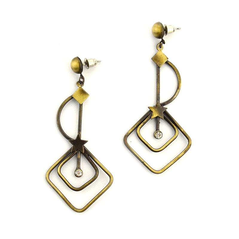 Antique χρυσά σκουλαρίκια ρόμβοι με στρας