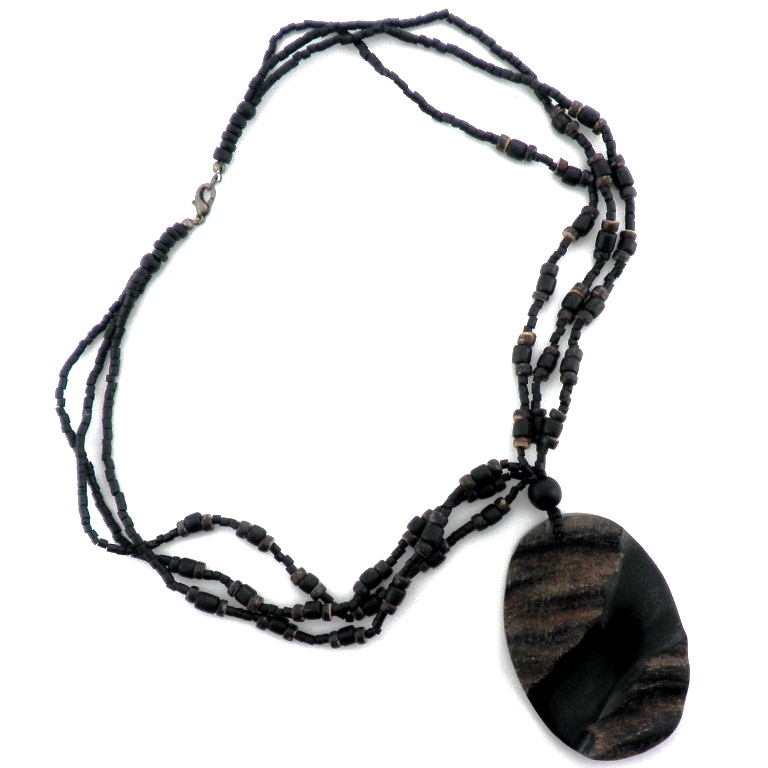 Ξύλινο καφέ κολιέ με οβάλ κρεμαστό