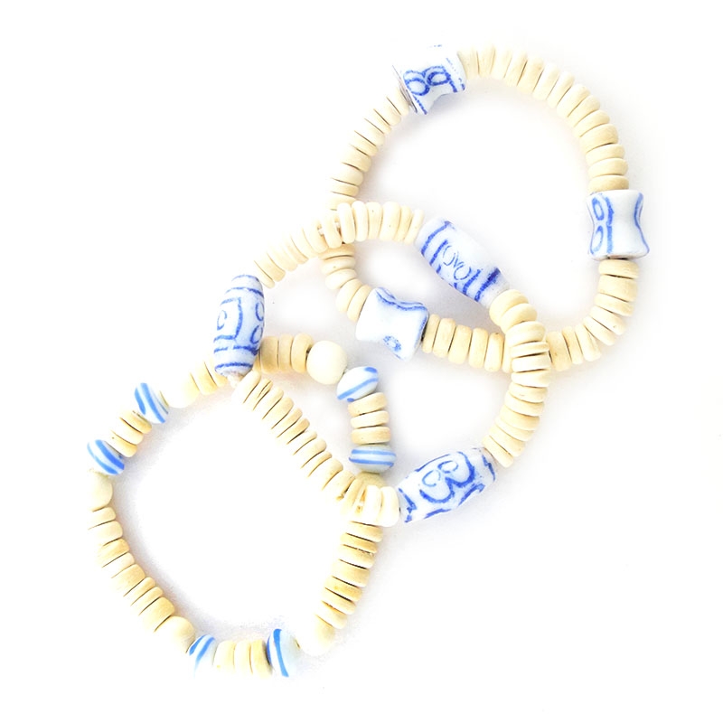 3 x ελαστικά βραχιόλια με ξύλινες και γυάλινες χάντρες