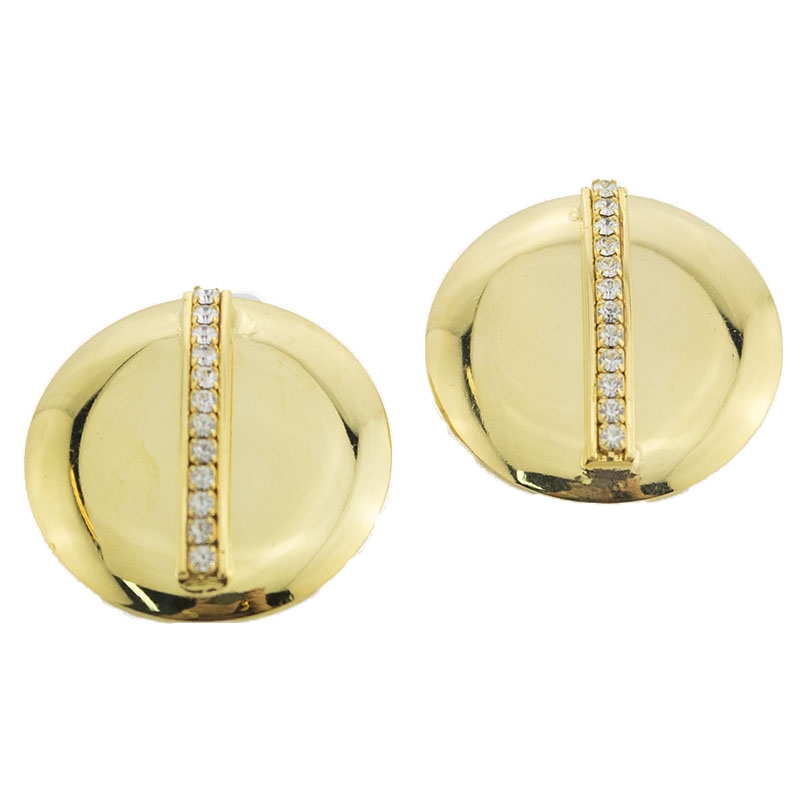 Χρυσά κυκλικά clips σκουλαρίκια με λευκά στρας