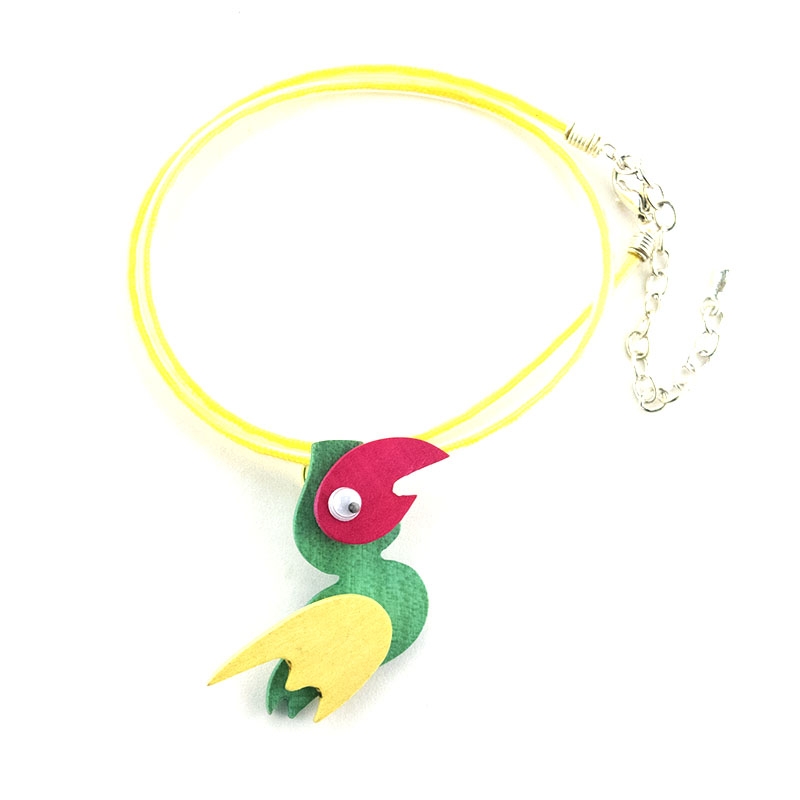 Κολιέ σιλικόνης με ξύλινο παπαγαλάκι