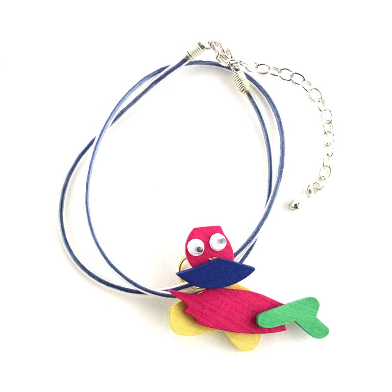 Κολιέ σιλικόνης με φουξ ξύλινο πουλάκι