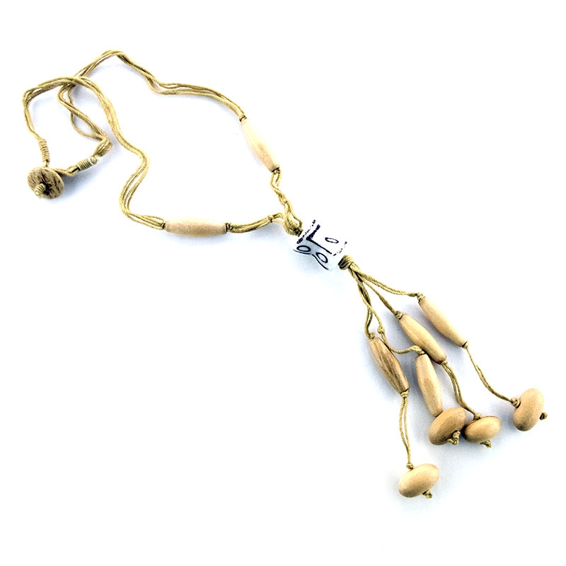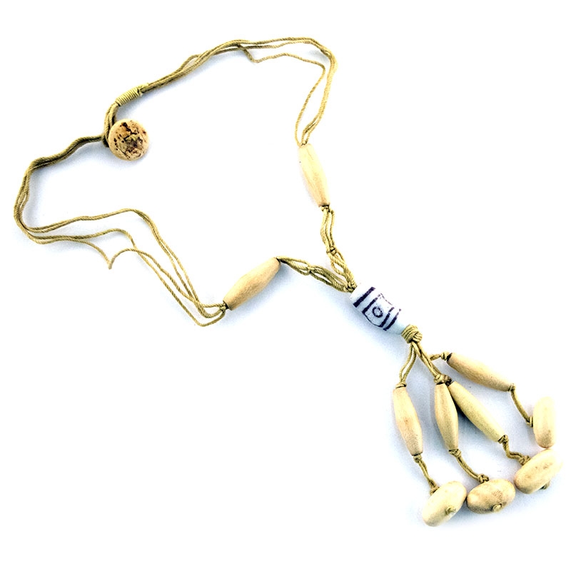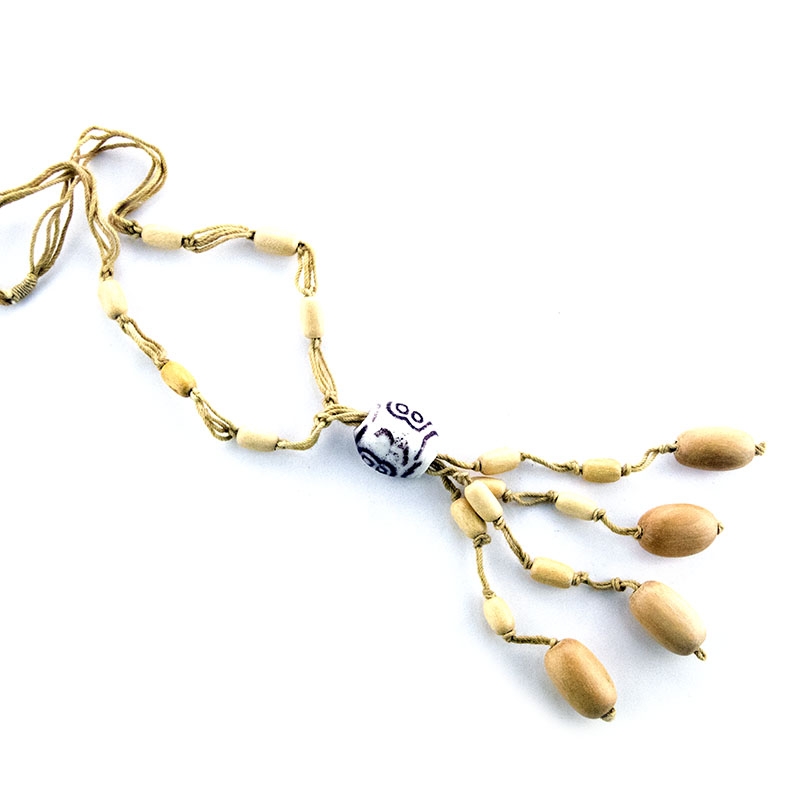 Πλεκτό κολιέ rain με λευκό και καφέ γυάλινο charm