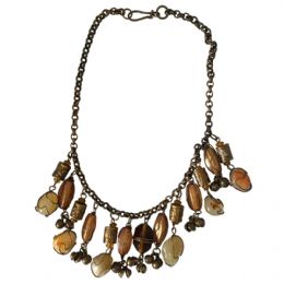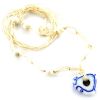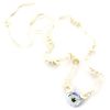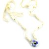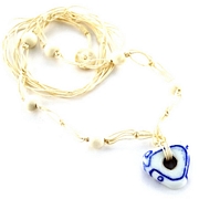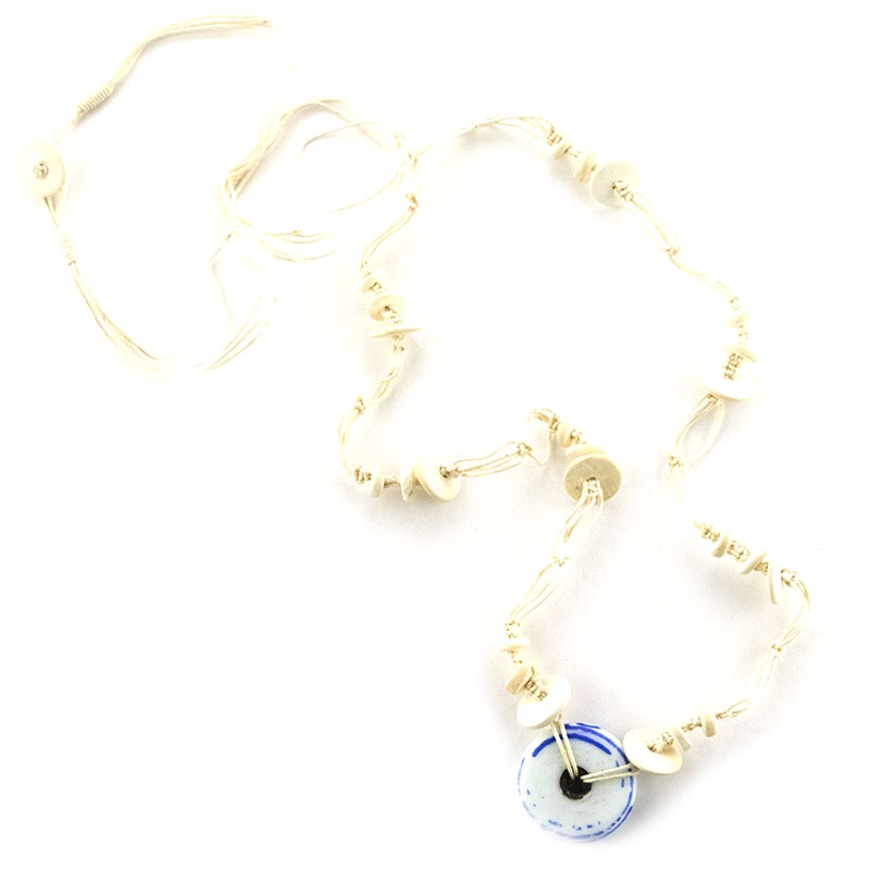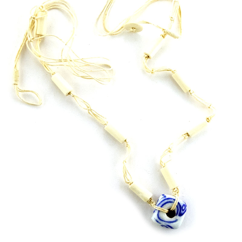 Μακρύ πλεκτό κολιέ με λευκή και μπλε γυάλινη χάντρα