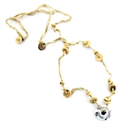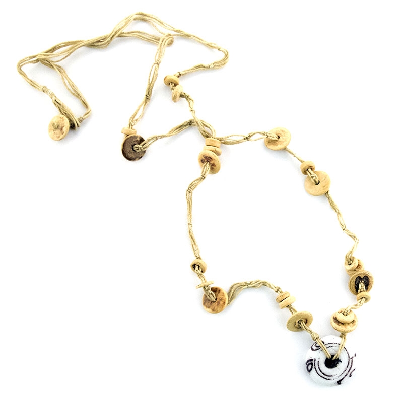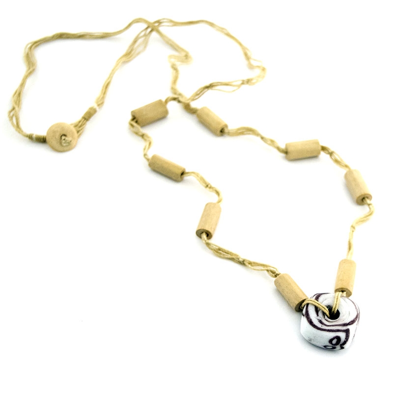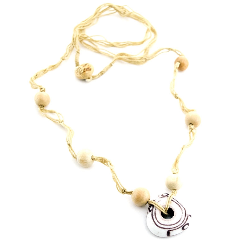 Μακρύ πλεκτό κολιέ με λευκή και καφέ γυάλινη χάντρα
