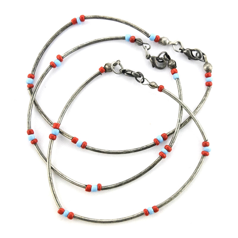 3 x βραχιόλια με τιρκουάζ και κόκκινες χάντρες