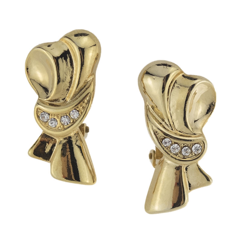 Χρυσά σκουλαρίκια κλιπ φιογκάκια με στρας