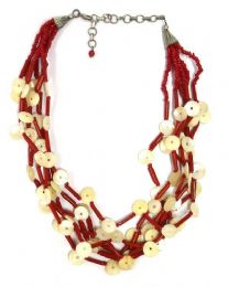 Κολιέ - ζώνη από κορδόνι με κοκάλινα και ξύλινα στοιχεία