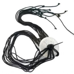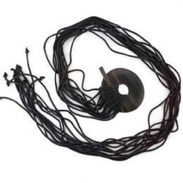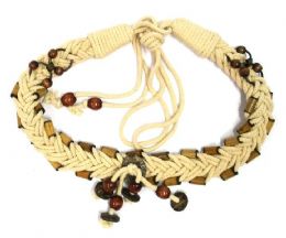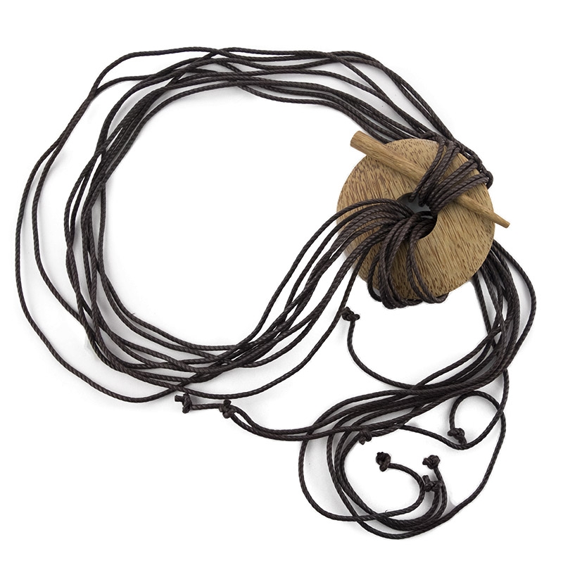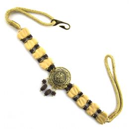 Ζώνη με καφέ κορδόνια και μπεζ ξύλινη τόκα