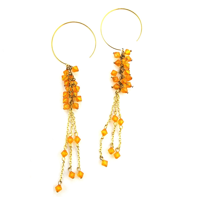 Χρυσά μακριά σκουλαρίκια με μελί χάντρες