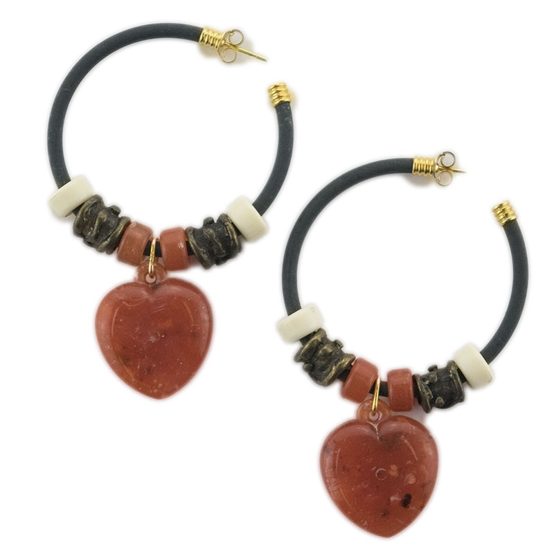 Καουτσούκ κρίκοι με εκρού χάντρες και μεγάλες κρεμαστές καρδιές