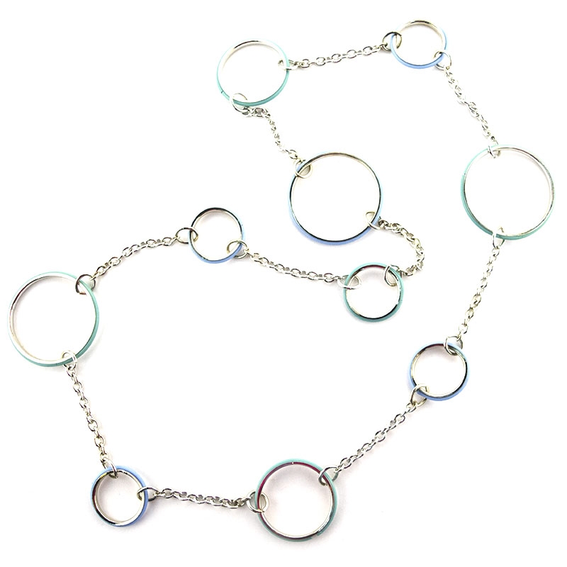 Μακρύ κολιέ με ασημί και γαλάζιους κρίκους σιλικόνης