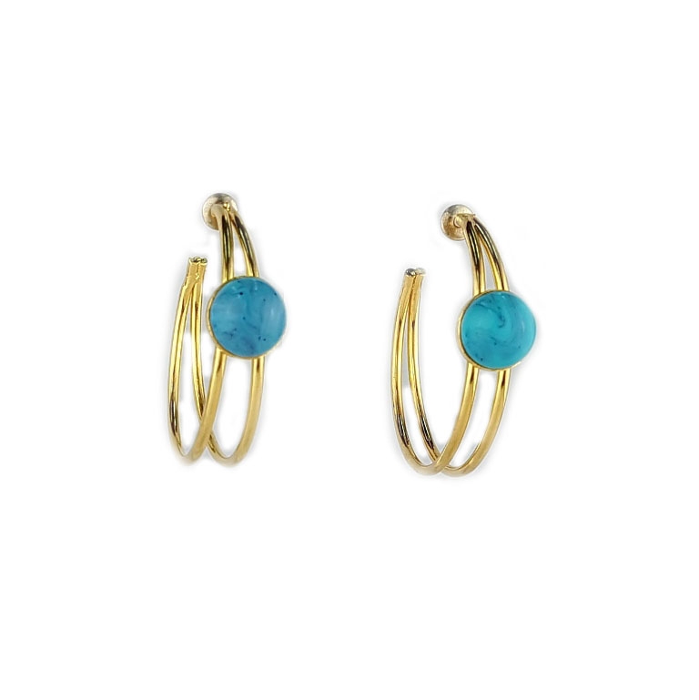 Διπλοί κρίκοι σκουλαρίκια με τιρκουάζ πέτρες