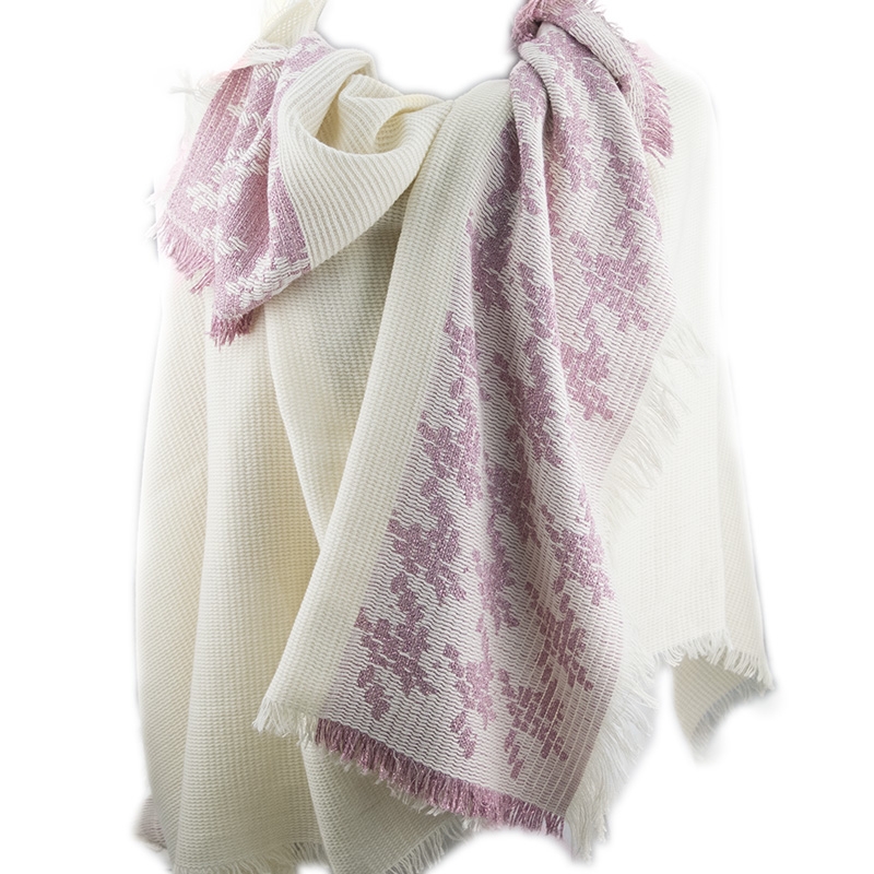 Εκρού Ιταλικό βαμβακερό πόντσο με ροζ Pied de Poule μπορντούρα