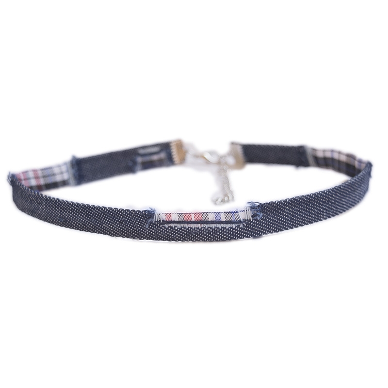 Jean τσόκερ με καρό patches και ασημί κούμπωμα