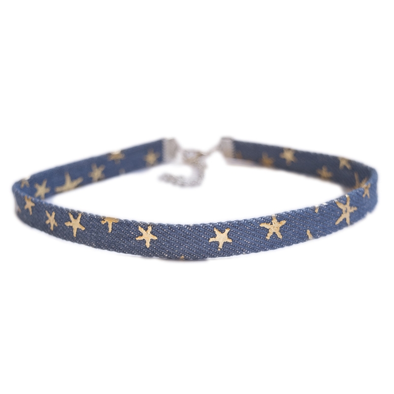 Jean τσόκερ με χρυσά αστέρια και ασημί κούμπωμα