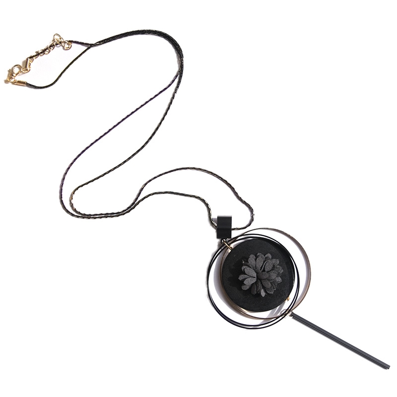 Δίχρωμη μαύρη και χρυσή αλυσίδα κολιέ με τρισδιάστατο λουλούδι