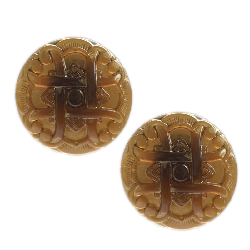 Clip μελί κυκλικά σκουλαρίκια με ρετρό ανάγλυφα σχέδια