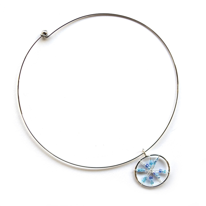 Ασημί τσόκερ με συρμάτινο κυκλικό charm και τιρκουάζ χάντρες