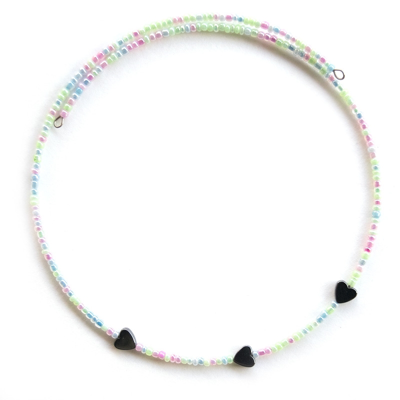 Τσόκερ από παστέλ χάντρες και ατσαλί καρδιές