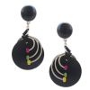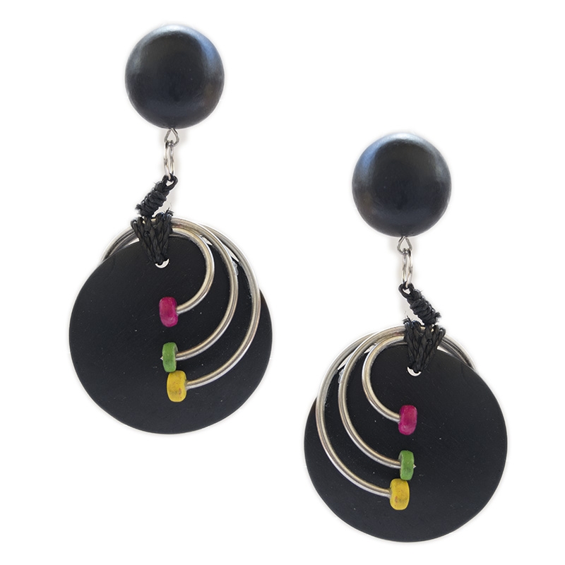 Ξύλινα κλιπ σκουλαρίκια με κυκλικό charm και τρεις χρωματιστές χάντρες