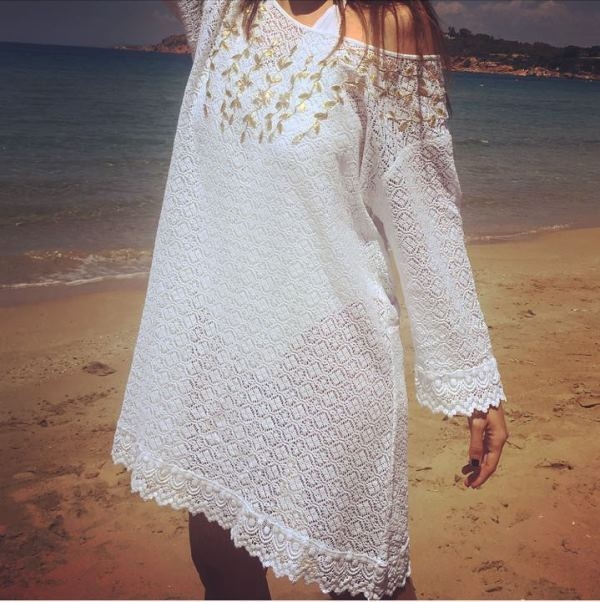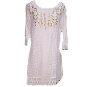 Λευκό βαμβακερό Ινδικό καφτάνι με χρυσό κέντημα