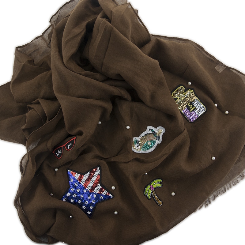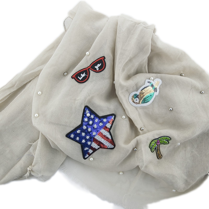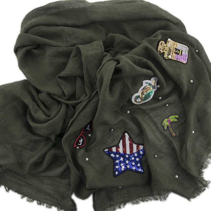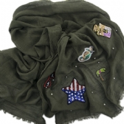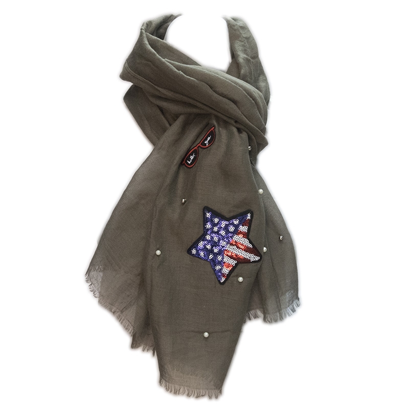 Φαρδύ rock φουλάρι με πέρλες και patches γυαλιά, αστέρι, παπαγάλο και άρωμα