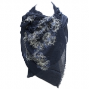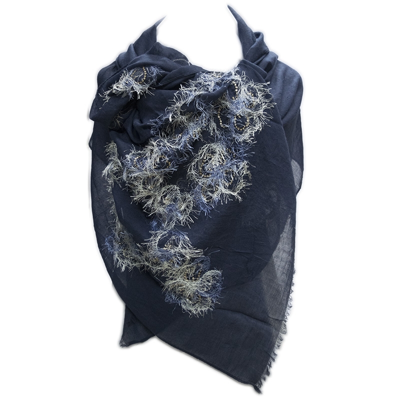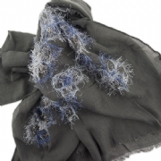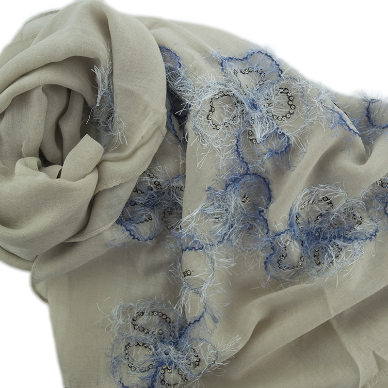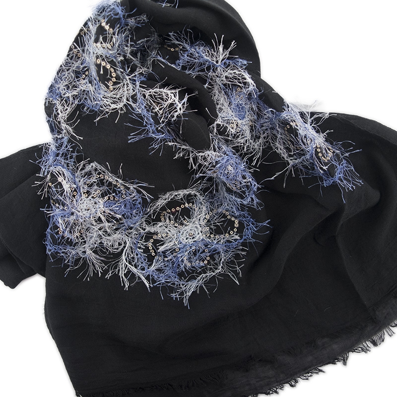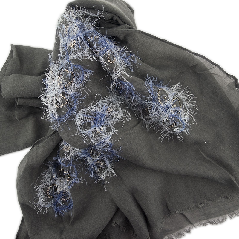 Φαρδύ φουλάρι με μαλλιαρά λουλούδια και παγιέτες