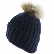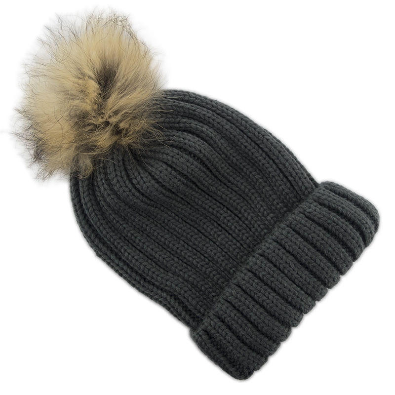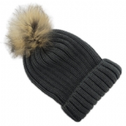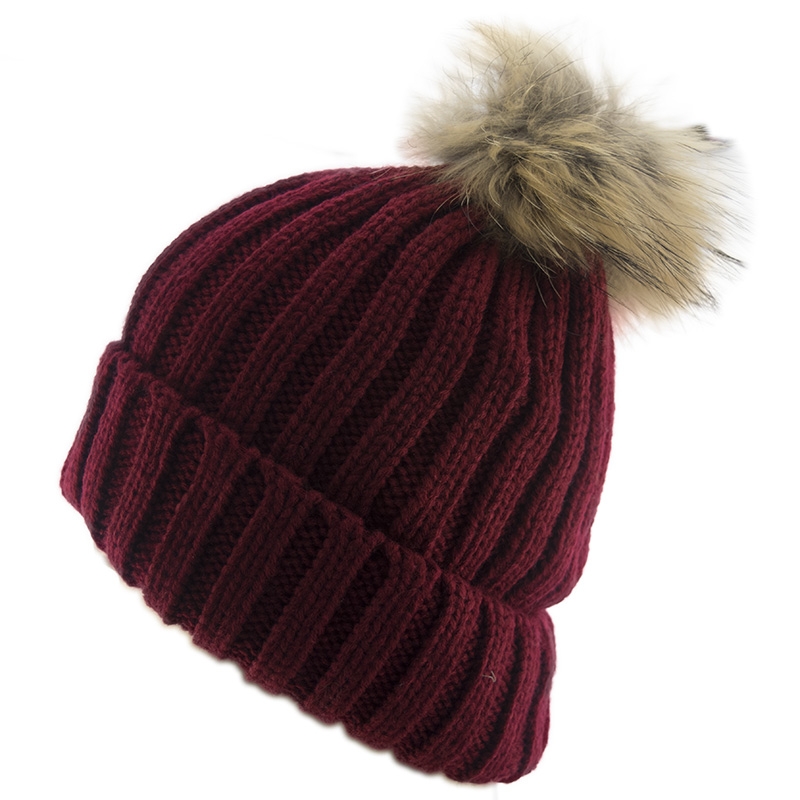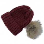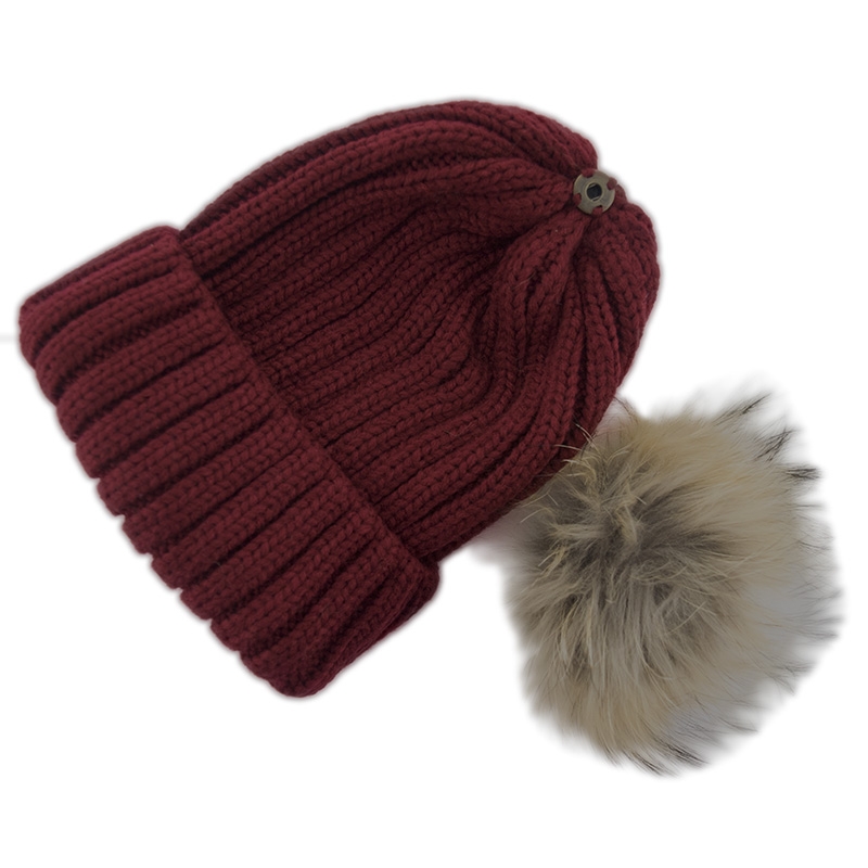 Μάλλινος σκούφος με ριγέ πλέξη και αποσπώμενο γουνάκι